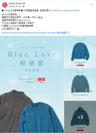 顏色的搭配,女主角除了工作中的服飾之外,大部分的服裝色系都是以藍色為主,有影迷分析,這是呼應她看似完美人設之下,帶著淡淡的陰鬱及不自信。透過藍色系題材聯想描述,結合自家藍色系列產品,打造專屬的標語。